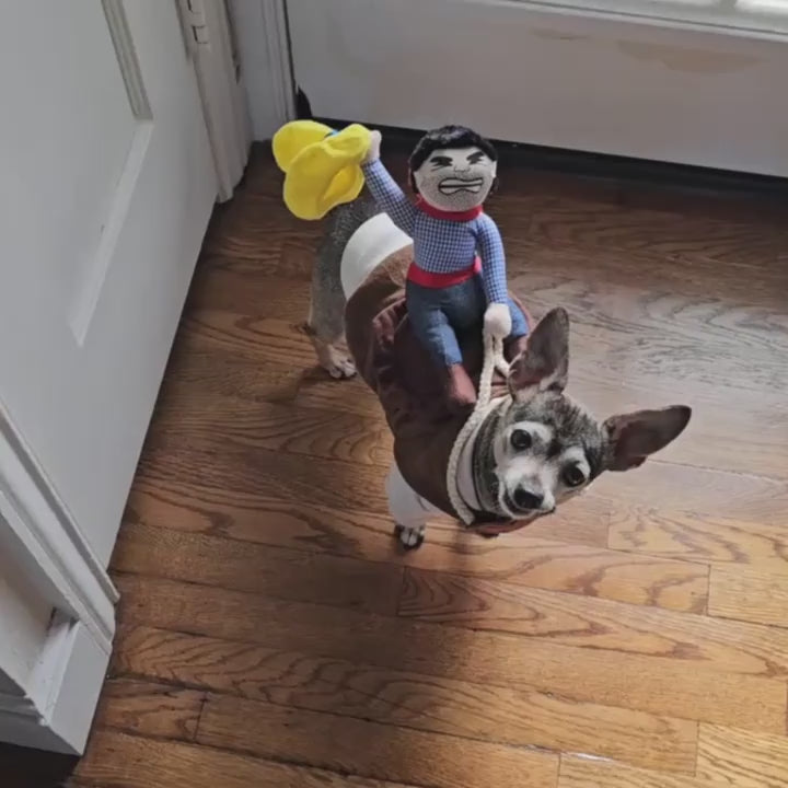 This adorable Cowboy Rider Dog Costume features a soft adjustable vest with a funny cowboy rider doll that sits on your pup’s back. Comfortable, lightweight, and sure to bring laughs at every party or photo shoot.